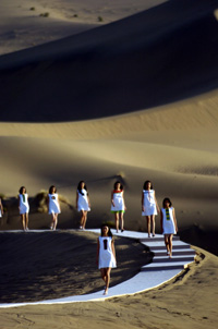 皮爾·卡丹在敦煌鳴沙山舉行2008春夏時裝發(fā)布會 本報記者:聶建江
