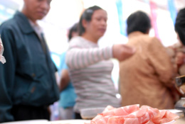 很多人吃過生魚生蝦,有誰吃過生豬肉?正在?谂e行的2007中國(海南)國際熱帶農(nóng)產(chǎn)品冬季交易會(huì)上,一種吃酸奶長大的豬肉就可以生著吃,企業(yè)還現(xiàn)場煎肉,獨(dú)特的香味引起眾多客商和市民的好奇。