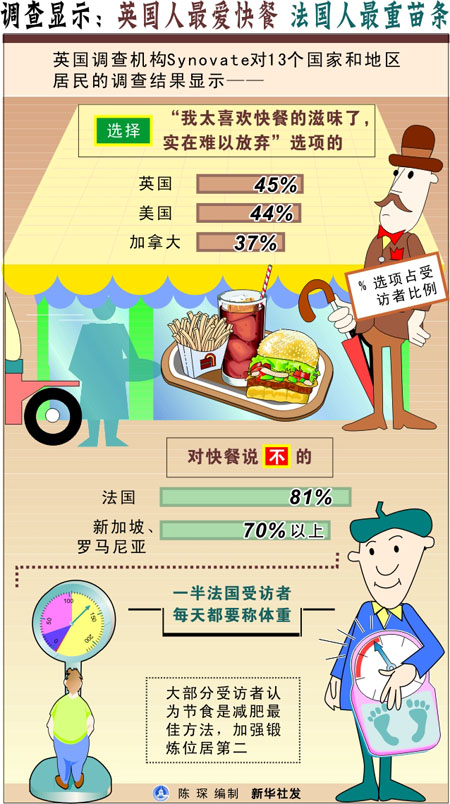 調(diào)查:英國人最愛快餐 法國人最重苗條