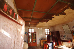 1月8日,青海省化隆回族自治縣扎巴鎮(zhèn)中心學(xué)校的一名教師在向記者介紹該校破爛不堪的校圖書室。 中小學(xué)圖書室建設(shè)對(duì)于偏遠(yuǎn)落后的西部地區(qū)具有重要而深遠(yuǎn)的意義,在滿足當(dāng)?shù)刂行W(xué)生知識(shí)信息需求方面發(fā)揮著積極、有效的作用。然而,記者在青海省化隆、循化等縣調(diào)查發(fā)現(xiàn),大多數(shù)中小學(xué)根本沒有圖書室,個(gè)別有圖書室的學(xué)校圖書室藏書大多是20世紀(jì)50至70年代的老書和一些“科學(xué)養(yǎng)殖”一類的受贈(zèng)圖書。記者在青海省化隆回族自治縣了解到,當(dāng)?shù)赜?80所中小學(xué)校,有圖書室的只有十幾所,圖書室藏書總共3萬多本,在這個(gè)擁有48000多名義務(wù)階段中小學(xué)生的縣城,學(xué)生人均擁有課外圖書連一本都不到。 |