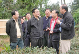 財政部副部長、國務(wù)院海南農(nóng)墾管理體制改革工作小組組長廖曉軍(左二)考察海南農(nóng)墾(左一為海南農(nóng)墾總局局長王一新)。楊平昌 攝