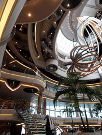 2月20日,美國(guó)皇家加勒比郵輪公司屬下的巴哈馬籍超大型豪華郵輪“海洋迎風(fēng)”號(hào)駛抵中國(guó)熱帶濱海旅游城市三亞。圖為“海洋迎風(fēng)”號(hào)郵輪的大堂。
