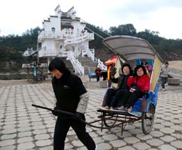 安徽黃山市前段時(shí)間遭遇的雪災(zāi)造成旅行團(tuán)退團(tuán)400多個(gè),當(dāng)?shù)匦羌夛埖杲哟看蠓陆怠D壳,黃山的各大景區(qū)已全面恢復(fù)正常運(yùn)營,游客接待量開始逐步回升。圖為韓國游客在黃山花山謎窟景區(qū)游覽。