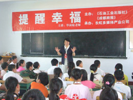 由于初中課本中收錄了畢淑敏的《提醒幸福》一文,所以畢淑敏特意為學生們講解了《提醒幸福》這篇文章,并以此為引子,對學生們做心理輔導。她用“為什么要提醒幸!遍_頭,把心中這個秘密講給學生聽。人生、世界是畢淑敏在課堂上的兩個主題,她生動的講解似乎帶著同學們走出了北川,走進了外面的大千世界。