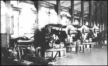 上海機(jī)器織布局的精紗車間 |