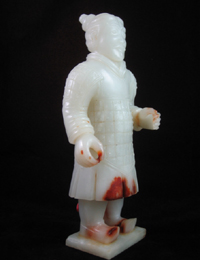 2008年10月,兩件海外回流文物將由北京中嘉國(guó)際拍賣公司公開拍賣,一件是戰(zhàn)國(guó)和田玉武士俑,另一件是戰(zhàn)國(guó)和田玉劍。 在傳世古玉器中,用新疆和田籽玉琢制而成的藝術(shù)品尤其珍貴。將要拍賣的戰(zhàn)國(guó)秦武士俑高23厘米,選用上等和田籽玉,玉質(zhì)如羊脂般潔白細(xì)膩。俑身下部帶有朱砂紅泌、衣甲邊延有非常珍貴的只有和田籽玉才有的棗皮紅。人物莊重、肅穆的表情,體現(xiàn)了武士的威嚴(yán)和恭敬,且形象生動(dòng),服飾衣甲、發(fā)式均真實(shí)具體,人物臉部輪廓及紋飾線條極為流暢自然,傳神、生動(dòng),極具藝術(shù)魅力,體現(xiàn)了戰(zhàn)國(guó)時(shí)代琢玉藝人高超的工藝和非凡的藝術(shù)想象力。 另一件戰(zhàn)國(guó)和田玉劍為新疆和田籽料琢制,長(zhǎng)49.8厘米,由劍首、劍莖、劍格、劍身所組成,劍首為扁圓餅狀,帶有少量朱砂紅泌,裝飾紋分為內(nèi)外兩部分,外部為一圈柿蒂紋圍繞,內(nèi)部為隆起的一朵菱花紋,線條流暢而有動(dòng)感,莖部為螺旋紋,工藝要求精度極高,劍格浮雕饕餮紋,紋飾精美,是典型戰(zhàn)國(guó)中、晚期風(fēng)格,為戰(zhàn)國(guó)時(shí)楚國(guó)的形制。其工藝之精巧,劍形之美,紋飾之細(xì)膩,用料之考究。 北京市文物局副研究員、鑒定專家史潤(rùn)梅認(rèn)為,這兩件戰(zhàn)國(guó)玉器,用料為新疆和田籽玉,溫潤(rùn)潔白,如羊脂,工藝水平非常高超,用現(xiàn)代工具都達(dá)不到,玉俑面部輪廓細(xì)膩、發(fā)絲清晰,衣紋鎧甲,飄逸整齊。玉劍形式規(guī)整,做工精致。為難得一見(jiàn)的精品玉器。 |