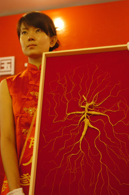 日前,在吉林省長春市舉辦的2008中國·吉林國際人參大會“長白山參王”拍賣會上,一棵有百年參齡的長白山“野山參王”,以86萬元高價拍賣成功,成為野山參的“王中之王”。 據(jù)負責(zé)本次拍賣會的吉林省宏大拍賣有限公司工作人員介紹,這棵人參于今年8月3日在長白山腳下、蛟河漂河川附近出土,參齡達百年以上,鮮重85克,干重25克,且五形俱美,紋少而清晰,腿須呈人字完美展向四周,猶如“仙光四射”,故得名為“千手觀音”。 在拍賣會上,這棵“千手觀音野山參王”的起價最高,為30萬元。在幾位買家的激烈競拍下,價格節(jié)節(jié)攀升,最后以86萬元高價競拍成功。一位不愿透露姓名的買家介紹,野山參藥用價值極高且具備很高的收藏價值:“野山參是稀有物種,會越來越稀少,很珍貴,所以要買來收藏!边@位買家在拍賣會上以58萬元也拍得一棵百年“野山參王”。 吉林長白山參王拍賣會迄今已經(jīng)成功舉辦了三屆。長白山區(qū)是中國乃至世界人參主產(chǎn)區(qū),產(chǎn)量分別占全國的80%和世界的70%,人參出口占世界出口量的60%以上。