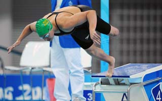 當所有人都以為杜托伊特會就此結(jié)束運動生涯時,這個性格堅強的女孩在三個月后重新回到泳池,而那時她才剛剛開始能夠走路。也許,泳池中振臂濺起的水花,才能讓這個女孩受傷的心得到撫平,可以讓她生活的信心得以延續(xù)。 2003年在全非運動會上,杜托伊特在和健全人同場競技中,獲得800米自由泳金牌。但杜托伊特并沒有停止創(chuàng)造“奇跡”的步伐,她并不滿足于在殘奧會上拿金牌。2008年5月3日,杜托伊特在西班牙世錦賽上獲得公開水域10公里第四名,終于敲開了奧運會的大門,獲得北京奧運會的參賽資格。 “我大多數(shù)時間里一直和健全人參加比賽,因為這樣可以讓我感覺到我和她們一樣,我是一個游泳選手,而不只是殘疾人運動員。殘奧會僅僅是我的比賽之一,對我來說,參加什么比賽并不重要,重要的是,只要我扎入水中,我就要拼盡全力,游出最好的自己。” |