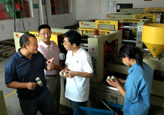 浙江諸暨農(nóng)村合作銀行采取優(yōu)化貸款審批機(jī)制、完善貸款激勵(lì)約束機(jī)制、健全專(zhuān)業(yè)化人員培訓(xùn)機(jī)制、出臺(tái)“聯(lián)保貸款”擔(dān)保方式、引導(dǎo)組建擔(dān)保公司等一系列新舉措,積極為支持中小企業(yè)發(fā)展作貢獻(xiàn)。圖為該行店口支行的信貸員在浙江中德如日管業(yè)有限公司了解企業(yè)生產(chǎn)經(jīng)營(yíng)情況并做好信貸服務(wù)工作。 |