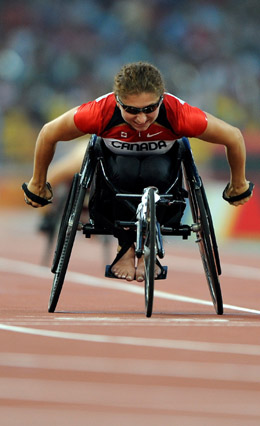 9月15日,加拿大選手選手史迪威在比賽中。當(dāng)日,在國家體育場進(jìn)行的北京2008年殘奧會女子100米T52級決賽中,史迪威以19秒97的成績奪冠,并打破世界紀(jì)錄。