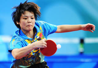 9月15日,中國選手范蕾在比賽中回球。當(dāng)日,在北京2008年殘奧會乒乓球女子團(tuán)體F6-10金牌爭奪賽中,中國隊以3比1戰(zhàn)勝波蘭隊,奪得冠軍。