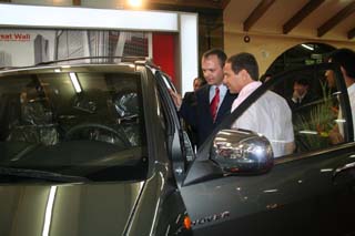 中國貿(mào)易展覽會11日至14日在圣何塞舉行。來自中國10個省市的28家企業(yè)參加展覽會。圖為哥斯達黎加外貿(mào)促進委員會會長埃斯(左一)參觀中國長城汽車公司參展的汽車。