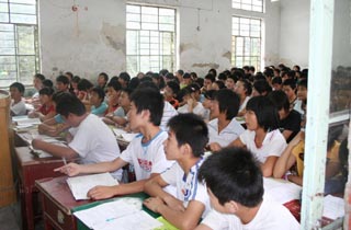 初三(6)班學(xué)生韓超杰說,“上課時大家都緊挨在一起,根本就不能動,下課了想上廁所都要擠半天才能出去。” “我們班教室里連風(fēng)扇都沒有,一到夏天就悶得不行,只能拿書本扇著風(fēng)上課。”學(xué)生詹竣婷說,“人實在是太多了,叫出每一個同學(xué)的名字都很困難! “我們班可能還不是人數(shù)最多的班級,老師也普遍反映工作量太大,為了讓學(xué)生聽清楚,老師們都拉大了嗓門講課!壁w從獻(xiàn)說,“在這種師生比例嚴(yán)重失調(diào)的情況下,教學(xué)質(zhì)量很難保證!