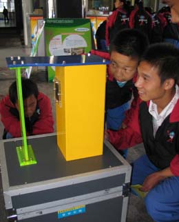 新疆科普大篷車日前開進(jìn)校園?破沾笈褴嚪Q之為流動的科技館,車內(nèi)的科普展品有吹不走的小球、錐體上滾、無弦琴、離心力等展品,涵蓋數(shù)學(xué)、物理學(xué)、光學(xué)、電磁技術(shù)等學(xué)科知識。這些簡單、易操作的科技模型,幫助學(xué)生們更形象地學(xué)習(xí)科技知識,展品吸引了百余名學(xué)生體驗。
