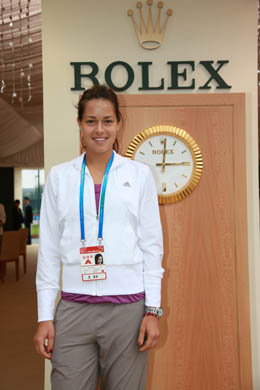 勞力士代言人安娜·伊萬諾維奇參觀中網(wǎng)勞力士展廳。