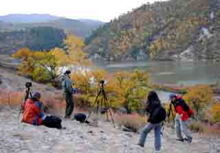 10月4日,旅游者在內(nèi)蒙古克什克騰世界地質(zhì)公園內(nèi)的西拉沐倫大峽谷拍攝疏林秋色。新華社記者:張領(lǐng)