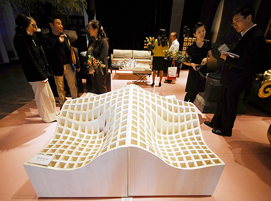 日前,第三屆上!案皇婪鍟(huì)”奢侈品展在上海展覽中心舉行。圖為客人在奢侈品展上參觀頂級(jí)家居產(chǎn)品。新華社發(fā)