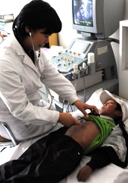 10月15日,北京安貞醫(yī)院和西藏自治區(qū)人民醫(yī)院醫(yī)學(xué)專家聯(lián)手對(duì)自2004年以來實(shí)施先天性心臟病手術(shù)的近百名兒童進(jìn)行復(fù)診。這是自2004年以來,北京安貞醫(yī)院第七次派出小兒心臟病醫(yī)學(xué)專家參與西藏地區(qū)的先天性心臟病普查和治療。這次復(fù)診的近百名兒童都是近年來根據(jù)病情輕重分別在西藏自治區(qū)人民醫(yī)院和北京安貞醫(yī)院接受了免費(fèi)治療的先天性心臟病患者。 |