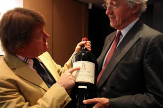 國(guó)際葡萄酒專(zhuān)家展示來(lái)自法國(guó)波爾多拉圖堡酒莊的名貴葡萄酒。新華社記者:張鳳國(guó)