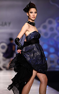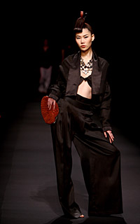 寫(xiě)實(shí)的牡丹、寫(xiě)意的牡丹、抽象的牡丹,每一套精工細(xì)作的華服上,都呈現(xiàn)出牡丹這一富貴的象征。兼有色、香、韻三者之美的牡丹成為了NE·TIGER2009高級(jí)華服系列的主題。 “國(guó)色天香”NE·TIGER高級(jí)定制華服,在工藝上采用了包括緙絲、蘇繡、云錦、剪紙工藝、手繪在內(nèi)的五種不同的傳統(tǒng)工藝,其中“織中之圣”——緙絲工藝尤為引人關(guān)注。緙絲又稱“刻絲”,是織與繡的結(jié)合,用梭機(jī)來(lái)刺繡,采用“通經(jīng)斷緯”的織法,具有猶如雕琢鏤刻的效果。