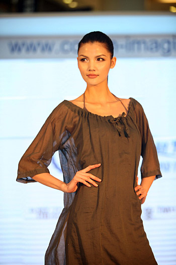 日前,“棉花——超乎你的想象”2008設(shè)計(jì)師大賽之“愛(ài)棉花,愛(ài)棉尚”設(shè)計(jì)頒獎(jiǎng)典禮在北京舉行。圖為模特莫萬(wàn)丹在展示獲獎(jiǎng)服裝。