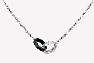 以螺絲為標(biāo)志的經(jīng)典e系列是卡地亞在全球最暢銷的作品。今年圣誕,“珠寶皇帝”卡地亞再次發(fā)揮無(wú)盡的創(chuàng)造力,用一系列全新的e手鐲、戒指及項(xiàng)鏈,延續(xù)愛(ài)的傳奇。 其中,今年全新升級(jí)的系列限量版項(xiàng)鏈,呈現(xiàn)出卡地亞獨(dú)具匠心的風(fēng)格和魅力。這款在圣誕節(jié)限量推出的作品,黑色陶瓷上雕刻有著名的螺絲標(biāo)志,與鑲嵌鉆石的18K白金金環(huán)絲絲相扣,渾然一體,和諧而甜蜜。(資料照片) | |