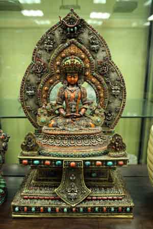 中拍國際2008秋季珍品拍賣會將于12月20日在北京亞洲大酒店舉槌,22件古代金銀器系列拍品將作為此次拍賣會的一大亮點(diǎn)。圖為拍品“銀累絲鑲寶石無量壽佛坐像”。