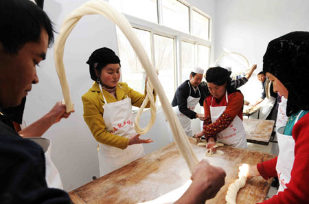 新年伊始,青海省海東地區(qū)利用農(nóng)民冬閑便于組織的時機,實施“陽光工程”、進城農(nóng)民工培訓等惠農(nóng)培訓項目,送技術(shù)進村,突出培訓的針對性和實用性,打造具有地方特色和競爭優(yōu)勢的勞務(wù)品牌,讓農(nóng)民工懷揣技能,走向全國各地務(wù)工、創(chuàng)業(yè)。1月7日,青海省循化撒拉族自治縣白莊鎮(zhèn)的撒拉族農(nóng)民在培訓點培訓拉面。