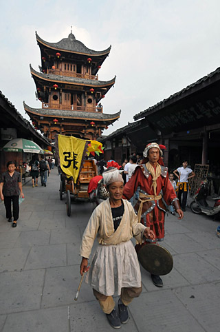 “祭祖、燈戲和巴逾舞是閬中春節(jié)特有的民俗活動(dòng),這其中也蘊(yùn)藏著豐富的文化遺產(chǎn),閬中古城目前正在申遺,這些文化遺產(chǎn)起著至關(guān)重要的作用!遍佒惺形麄鞑坎块L(zhǎng)宋俊向記者說(shuō)。 在神話傳說(shuō)中,伏羲的母親華胥氏是閬中人,她懷孕12年后到甘肅成紀(jì)縣生下了伏羲。因此在閬中,春節(jié)期間的祭祖活動(dòng)十分豐富,當(dāng)?shù)厝藢?duì)伏羲,女?huà)z和華胥充滿尊敬,在閬中古城的中天樓、風(fēng)水館和長(zhǎng)青寺中,伏羲、女?huà)z像前春節(jié)期間香火不斷;在閬中的三廟鄉(xiāng)、老官鎮(zhèn)、圣諭亭和圣諭臺(tái),春節(jié)期間經(jīng)常有民間的老人們?yōu)閲梢蝗Φ耐磔厒冎v三皇五帝的故事,讓祖先的神話源遠(yuǎn)流長(zhǎng)。 在閬中古城區(qū)的古街院之一李家大院,李家老小過(guò)著平靜而傳統(tǒng)的生活,李大爺對(duì)記者說(shuō),每年三十年夜飯開(kāi)飯前,他都要作為一家之主召集全家舉行莊嚴(yán)的祭祖儀式。在堂屋正中,李大爺要手執(zhí)香蠟,家人按長(zhǎng)幼排列其后,面對(duì)“天地君親師”牌位畢恭畢敬三鞠躬,然后他便開(kāi)始向祖先“神靈”匯報(bào)一家人的平安和一年來(lái)的功績(jī)。禮畢,大家才開(kāi)始落座共吃團(tuán)圓飯。 閬中市老觀鎮(zhèn)是千年古鎮(zhèn),一條千年老街述說(shuō)著古老的歷史,同時(shí)也孕育了豐厚的文化遺產(chǎn),享有盛譽(yù)的“川北燈戲”就是400年前發(fā)源于此并至今廣泛流傳的地方劇種。燈戲是民間歌舞小戲,以燈戲歌舞祀神,閬中很多鄉(xiāng)鎮(zhèn)都被譽(yù)為“燈戲窩子”。過(guò)年節(jié),燈戲藝人在田頭、院壩點(diǎn)亮五谷豐登、人壽年豐等字樣的大紅燈籠,舞曲樸實(shí)明快,語(yǔ)言下里巴人,使觀眾捧腹大笑。 春節(jié)期間,閬中男女老少都要跳巴象舞。巴象舞是一種集體舞,源于巴人由巫舞衍化而成的狩獵舞和戰(zhàn)舞,起源于漢代,后高祖把巴象舞引進(jìn)宮廷,常令表演,以耀舞觀兵,唐以后因?qū)m廷而逐漸消亡,但在民間卻流傳了下來(lái),現(xiàn)在只有在閬中等川內(nèi)少數(shù)地區(qū)完整地保存了下來(lái),很值得一看。