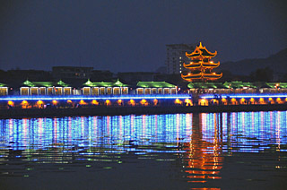 漢桓侯祠,也叫張桓侯祠,俗稱(chēng)張飛廟,位于閬中市古城區(qū)西街,是紀(jì)念三國(guó)時(shí)蜀漢名將張飛的祠廟。因張飛死后,追謚為桓侯,故名。張桓侯祠屢廢屢興,歷時(shí)1700余年,F(xiàn)存的張桓侯祠為一組四合庭式明、清古建筑群,占地6600多平方米,總建筑面積2400多平方米。主體建筑均沿中軸線布局,由南向北主要由山門(mén),敵萬(wàn)樓及左、右牌枋、大殿、后殿、墓亭及張飛墓和墓后園林組成。漢桓侯祠布局嚴(yán)謹(jǐn),構(gòu)造別致,既有雄偉壯觀的氣勢(shì),又幽雅精美,是一處重要的三國(guó)文化遺跡,1996年被列為國(guó)務(wù)院公布的第四批全國(guó)重點(diǎn)文物保護(hù)單位。 閬中貢院,在閬中古城內(nèi)學(xué)道街,“貢院”又叫“考棚”,閬中貢院是清朝鄉(xiāng)試的地方,所以又叫“清代考棚”,是川北道貢院的俗稱(chēng)。為清嘉靖年間所重建的,原由山門(mén)、廊道、考房、大殿、二殿、后殿和考生宿房組成。現(xiàn)存有卷棚式廊道,縱橫共長(zhǎng)50多米,廊道兩旁的木欄上帶有飛仙椅。左右有兩排考室,各室相隔,飾以雕花。至今保護(hù)較好,是全國(guó)僅存的兩處考棚之一。 華光樓,是閬中的標(biāo)志性建筑,橫跨大東街南頭,位于上、下華街之間,臨嘉陵江,正對(duì)南津關(guān)古渡。在閬中現(xiàn)存樓閣中,華光樓建造最早又最宏偉壯觀,根基穩(wěn)固,文化積淀深厚,因此被稱(chēng)作“閬苑第一樓”。華光樓是一座過(guò)街門(mén)樓,三重檐,歇山式盔狀屋頂,蓋翠綠色琉璃瓦,脊飾相當(dāng)繁復(fù),重脊套人、獸、鴟吻,正脊寶珠形頂高達(dá)3米,樓身通高36米,四柱直木,全系木結(jié)構(gòu),各層裝花窗,12個(gè)飛檐凌空,寶頂摩云。內(nèi)有梯可以層層攀沿,四周游廊挺出供人憑欄,更有詩(shī)文匾額供人賞嘆。 巴巴寺,也叫清真寺,又稱(chēng)禮拜寺,位于禮拜寺街西側(cè),為伊斯蘭教民禮拜場(chǎng)所。閬中巴巴寺始建于清康熙八年(1669年),系由陜甘土木專(zhuān)家仿西安華覺(jué)寺設(shè)計(jì)建造,占地3畝多。寺門(mén)東向,面闊三間,懸山式屋頂,脊中央塑雕花方盤(pán),中貯泥塑蓮花,穩(wěn)托荸薺形寶頂。沿街置木柵門(mén)。寺門(mén)門(mén)樓為亭閣式,寺內(nèi)庭院占地面積2.4畝,3條石板小徑直達(dá)禮拜大殿。大殿為傳統(tǒng)宮殿式,取明五暗三格局,無(wú)中梁,俗稱(chēng)“二郎擔(dān)山”,面積628平方米,高30米,其造型古樸莊重,氣勢(shì)雄偉,整個(gè)大殿雕梁畫(huà)棟,古雅清凈。殿內(nèi)外懸掛“剛常正理”、“敬道歸真”、“金天圣境”等鎏金大匾40余通。閬中清真寺是全國(guó)著名清真寺之一,被列為省重點(diǎn)文物保護(hù)單位。中國(guó)伊斯蘭教協(xié)會(huì)將其列為全國(guó)馳名古建筑百座清真寺之一,成為本地回民和外來(lái)穆斯林教民進(jìn)行宗教活動(dòng)的重要場(chǎng)所。 | | |