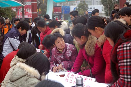 2月2日,安徽省黃山市黃山區(qū)舉辦返鄉(xiāng)農(nóng)民工專場(chǎng)招聘會(huì),40多家用人單位提供2000余個(gè)就業(yè)崗位,以滿足返鄉(xiāng)農(nóng)民工在家門口務(wù)工的就業(yè)需求。新華社發(fā)(葛軍