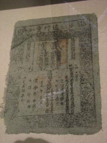 “至正通寶錢(qián)”!懊咳沼≡欤豢蓴(shù)計(jì),舟車裝運(yùn),軸轤相接,交料之散滿人間者,無(wú)處無(wú)之”。很快出現(xiàn)了通貨膨脹,物價(jià)騰貴,價(jià)逾十倍,貨幣貶值,形同廢紙。民間“皆以物貨相貿(mào)易,公私所積之鈔,遂俱不行”?磥(lái)發(fā)行貨幣也沒(méi)有發(fā)揮什么積極作用,反而加速了國(guó)家財(cái)政的徹底崩潰。