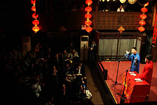 高曉攀告訴記者,目前北京的相聲表演團(tuán)體還有幾家,除了他們,其他的也經(jīng)營(yíng)得不錯(cuò)!拔矣X(jué)得金融危機(jī)對(duì)我們相聲行業(yè)來(lái)說(shuō)是個(gè)機(jī)遇,大家平時(shí)工作壓力這么大,更要在生活中尋找樂(lè)子。”高曉攀說(shuō)。 “現(xiàn)在相聲正處于一個(gè)上升期,有越來(lái)越多人的開(kāi)始喜歡聽(tīng)相聲。”高曉攀說(shuō),“電視相聲畢竟有個(gè)框框在那里,局限很多,有些好的東西表現(xiàn)不出來(lái)。相比之下,劇場(chǎng)里面的相聲表演擁有更廣闊的空間。” “而且,我認(rèn)為,不是說(shuō)只有我們創(chuàng)新的相聲大家才愛(ài)聽(tīng),很多傳統(tǒng)相聲也很受歡迎!备邥耘收f(shuō)。實(shí)際上,“嘻哈包袱鋪”現(xiàn)在的演出安排就是“傳統(tǒng)+原創(chuàng)”的模式,《大相面》《黃鶴樓》等傳統(tǒng)段子,依然受到大家追捧,相聲藝術(shù)一點(diǎn)也不過(guò)時(shí)。 |