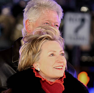 美國前總統(tǒng)克林頓(后)與夫人希拉里。新華社記者 侯俊