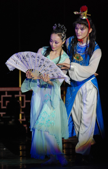 2月23日,演員表演大型原創(chuàng)舞劇《紅樓夢》。 當(dāng)晚,北京軍區(qū)政治部戰(zhàn)友文工團(tuán)在廣東汕頭林百欣國際會展中心上演大型原創(chuàng)舞劇《紅樓夢》。