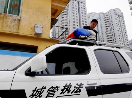 廈門市城市管理執(zhí)法局工作人員利用基于TD技術(shù)建成的噪音移動監(jiān)控系統(tǒng)監(jiān)測噪音。