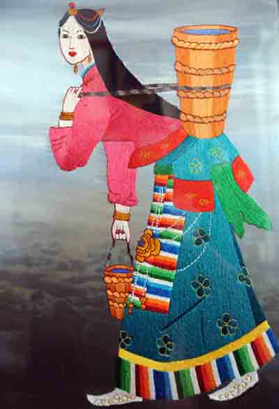 青海省海南藏族自治州貴南縣近年來(lái)弘揚(yáng)開(kāi)發(fā)藏族民間文化藝術(shù),扶持發(fā)展傳統(tǒng)藏繡產(chǎn)業(yè),成為當(dāng)?shù)夭刈遛r(nóng)牧民群眾尤其是藏族婦女的致富渠道。貴南傳統(tǒng)藏繡繡法獨(dú)特,繡品色彩艷麗、線條流暢,做工精美絕倫,具有很高的藝術(shù)觀賞價(jià)值和收藏價(jià)值。