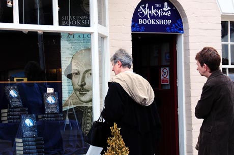 22日,在英格蘭中西部埃文河畔斯特拉特福的莎士比亞書店,兩位游客在櫥窗前駐足觀看。4月23日是“世界讀書日”,也是英國作家、戲劇家莎士比亞的誕辰。前來莎翁故居參觀的不少游客選擇在莎翁故居對面的莎士比亞書店買幾本書留念!