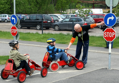 27日,芬蘭首都赫爾辛基“兒童交通城”的工作人員向兒童講解交通規(guī)則。為了從小培養(yǎng)孩子們的交通安全意識,赫爾辛基青少年事務中心在市中心建立了“兒童交通城”,專門對學齡前兒童和基礎學校低年級學生進行交通安全教育!皟和煌ǔ恰蹦M城市里的各種交通設施,不僅設計了各種不同的路段、交叉路口、人行道、自行車道和斑馬線,而且還設有與實際大小一樣的各種交通標志和交通燈。赫爾辛基地區(qū)幼兒園和學校的老師可通過電話預約的方式,帶領孩子們免費來這里接受交通安全教育。