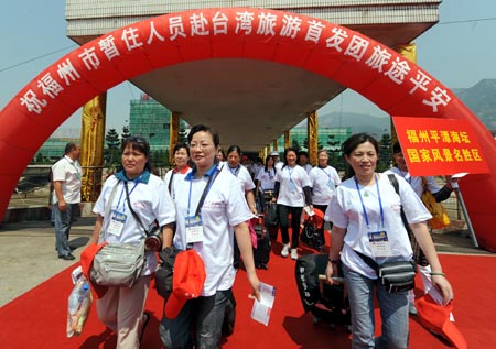 5月30日,福州市暫住人員赴臺(tái)灣旅游首發(fā)團(tuán)的515名游客分別搭乘“合富輪”和“金龍?zhí)枴鼻巴_(tái)灣本島及馬祖地區(qū)旅游,實(shí)現(xiàn)了在榕暫住人員經(jīng)福州口岸赴臺(tái)灣地區(qū)(含金門、馬祖、澎湖)旅游的新突破。