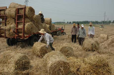 6月2日,在河南省社旗縣城郊鄉(xiāng)柳營(yíng)村,秸稈打捆作業(yè)隊(duì)將秸稈打捆回收。 為遏制焚燒秸稈,畜牧養(yǎng)殖大縣社旗縣組織數(shù)十臺(tái)秸稈打捆機(jī)械,活躍在田間地頭,將秸稈捆扎回收。秸稈可以成為牛羊飼料,變廢為寶。僅此一項(xiàng),每畝地可為農(nóng)民增收40余元。
