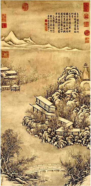 3幅清朝宮廷收藏后散佚民間的古畫,在嘉德2009春季拍賣會(huì)上以總計(jì)1.11億元的價(jià)格成交。董邦達(dá)的《雪后悅心殿詩意圖》拍得人民幣795.2萬元。本報(bào)記者汪永基攝 |