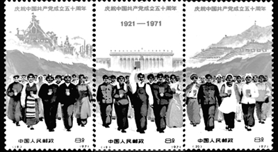 中國共產(chǎn)黨成立五十周年三枚連票。