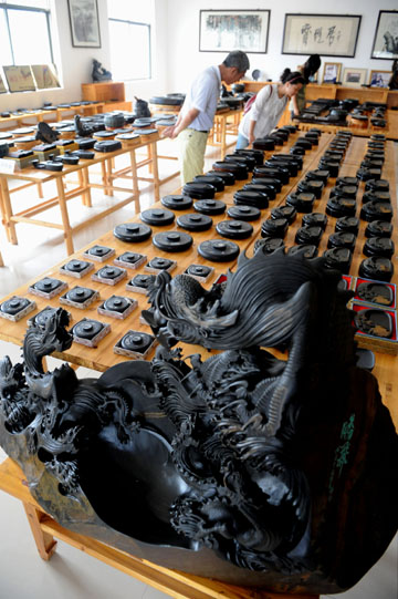 游客正在參觀他的集萃軒龍尾歙硯藝術(shù)館。 |