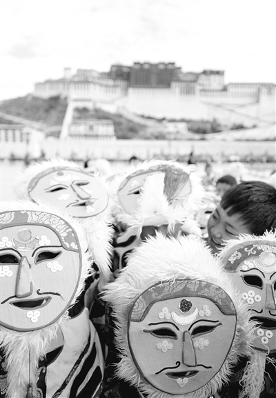 8月23日,總投資3.8億元的西藏三大重點文物保護維修工程竣工慶典在拉薩市布達拉宮廣場舉行。作為我國政府高度重視西藏文化保護的一項標志性工程,布達拉宮、羅布林卡、薩迦寺三大重點文物保護維修工程于2002年開工,維修主要包括古建筑和壁畫維修、搬遷和環(huán)境整治、新改建公用設施等。圖為當日參加竣工典禮的孩子們帶著藏戲面具在布達拉宮廣場合影。
