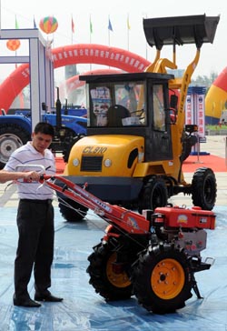8月27日,2009中國(guó)現(xiàn)代農(nóng)業(yè)裝備國(guó)際展覽會(huì)暨中國(guó)農(nóng)業(yè)機(jī)械工業(yè)六十年成就展在南京國(guó)際展覽中心拉開帷幕。本次展會(huì)為期三天,展覽面積五萬平方米,來自全國(guó)各地的300多家農(nóng)機(jī)企業(yè)及科研單位展示農(nóng)業(yè)生產(chǎn)、運(yùn)輸、動(dòng)力、農(nóng)副產(chǎn)品加工、畜牧、園林、食品加工包裝、中小型工程和農(nóng)田水利施工八大類機(jī)械設(shè)備,展現(xiàn)農(nóng)機(jī)工業(yè)領(lǐng)域的輝煌成就。 |