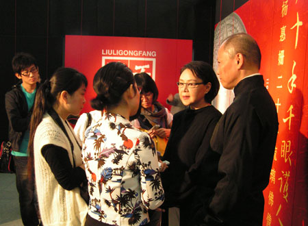 臺(tái)灣著名琉璃藝術(shù)家楊惠姍在佛文化藝術(shù)展與觀眾交流