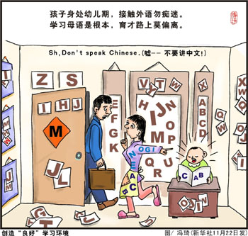 面對(duì)如此的“殊榮”,最先皺緊眉頭的是廣大英語(yǔ)教育工作者。一位河北某重點(diǎn)高中的英語(yǔ)老師向記者表示:“國(guó)人既然在學(xué)習(xí)國(guó)際通用的英語(yǔ),那就應(yīng)該堅(jiān)持學(xué)習(xí)原汁原味的。中國(guó)式英語(yǔ)的泛濫成災(zāi)恰恰說(shuō)明我們對(duì)標(biāo)準(zhǔn)英語(yǔ)接觸的太少!痹谒磥(lái),中國(guó)式英語(yǔ)所折射出的不僅僅是國(guó)民的英語(yǔ)水平,更是全民文化素質(zhì)!斑^(guò)于應(yīng)試化的教育在一定程度上在為中國(guó)式英語(yǔ)推波助瀾!彼f(shuō)。