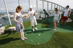 盡管“海洋綠洲”號(hào)的各種設(shè)施使乘客得以體驗(yàn)世界各地的休閑活動(dòng),但蒂姆認(rèn)為,在這艘巨輪上,人們恐怕難以體會(huì)到身在海上的感覺(jué)。 由于船體巨大,乘客往往在“海洋綠洲”號(hào)上轉(zhuǎn)悠好幾個(gè)小時(shí)也看不到大海。裝飾在船艙內(nèi)各處的大約7000幅藝術(shù)作品也鮮以海洋為表現(xiàn)對(duì)象,大多描繪沙漠、森林等陸上景象,似乎極力避免“提醒”乘客他們身在海上。 不過(guò),更能夠讓乘客誤以為身處陸地的,大概是游輪主甲板上的綠地公園。?吭诖a頭時(shí),“海洋綠洲”號(hào)看上去像一座公寓樓,但實(shí)際上,這座“公寓樓”中間是一個(gè)天井式的中央公園。公園內(nèi)栽種著大約1.2萬(wàn)株園景植物,四周由8層帶陽(yáng)臺(tái)的客房包圍。這意味著乘客足不出戶即可觀賞綠意,就像在自家陽(yáng)臺(tái)觀景一般。這一方面使乘客避免因海上旅途漫長(zhǎng)、空間封閉、景觀單調(diào)等原因患病,另一方面也使他們的注意力離開船艙外的茫茫海洋,集中到船艙中央這片“人造陸地”上來(lái)。 皇家加勒比郵輪公司2008年舉辦了一場(chǎng)大約9萬(wàn)人參與的競(jìng)賽,為這艘巨輪征集名稱;蛟S正由于把綠意和海洋這兩種看似無(wú)關(guān)的元素完美融合,這艘巨輪最終獲稱“海洋綠洲”。 “海洋綠洲”號(hào)本月初從美國(guó)佛羅里達(dá)州勞德代爾堡大沼澤地港出發(fā),開始它的處女航,目的地為海地。今后,這艘游輪將在勞德代爾堡、美屬維爾京群島首府夏洛特·阿馬里、荷屬安的列斯主要城市菲利普斯堡和巴哈馬國(guó)首都拿騷等城市港口間往返,以數(shù)百美元至上千美元不等的票價(jià),搭載乘客環(huán)游加勒比海。 不過(guò),既然“海洋綠洲”號(hào)本身已經(jīng)足以成為一個(gè)讓乘客盡興玩樂(lè)到忘記海洋的旅游目的地,它是否還需要在大海上作如此漫長(zhǎng)航行?面對(duì)媒體記者這一質(zhì)疑,皇家加勒比郵輪公司總裁理查德·費(fèi)恩解釋說(shuō),“海洋綠洲”號(hào)作為一艘輪船,如果不駛?cè)牒Q,僅停留在某個(gè)海灣內(nèi)供游客上船玩樂(lè),其意義恐怕不過(guò)是一座豪華海景酒店。