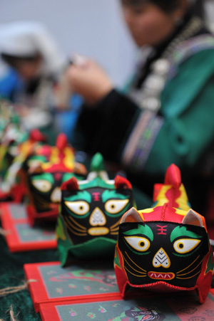 一名水族的手工藝人在貴陽一作坊內(nèi)制作“祥云神虎”,迎接農(nóng)歷虎年的到來。